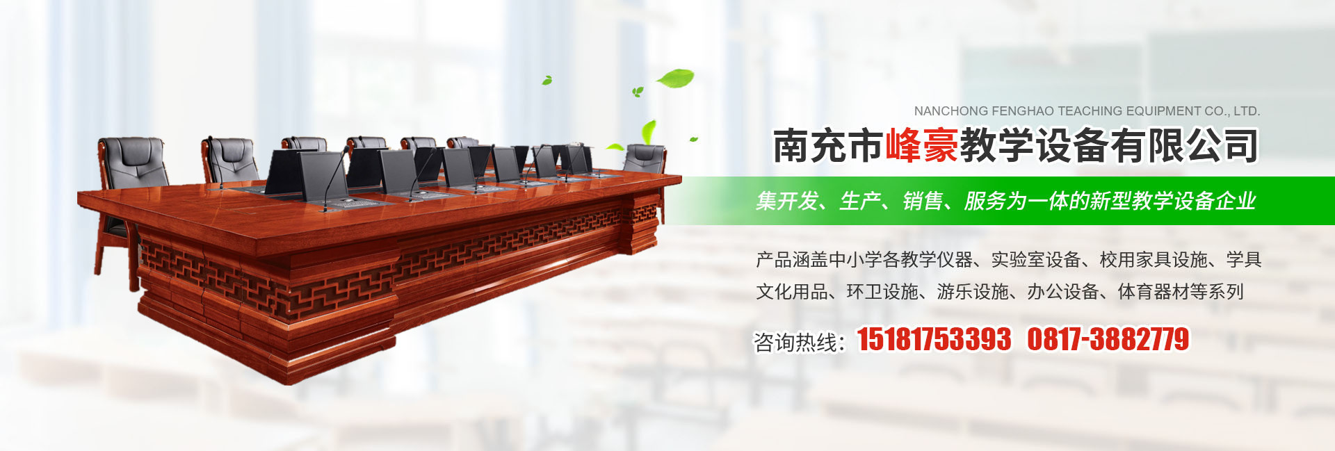 南充市峰豪教學設備有限公司座落于四川省南充市。是一家集開發、生產、銷售、服務為一體的新型教學設備企業。擁有中高級專業技術人員二十多名。產品涵蓋中小學各教學儀器、實驗室設備、校用家具設施、學具、文化用品、環衛設施、游樂設施、辦公設備、體育器材等系列自公司成立以來,相繼取得由中國中經產品質量保障中心評為質量、信譽雙保障示范單位”;中國市場品牌戰路論壇組委會評為“質量、服務、信譽AA企業”、“全國教學儀器設備行業質量放心、用戶滿意十佳誠信企業”。本公司產品廣泛用于各學校、餐廳、醫院、影劇院、游樂場、度假村